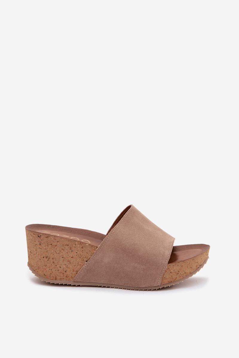 ZazooZazoo 40311 Dámske semišové papuče Zapnuté KorkoInym Koturnie béžová