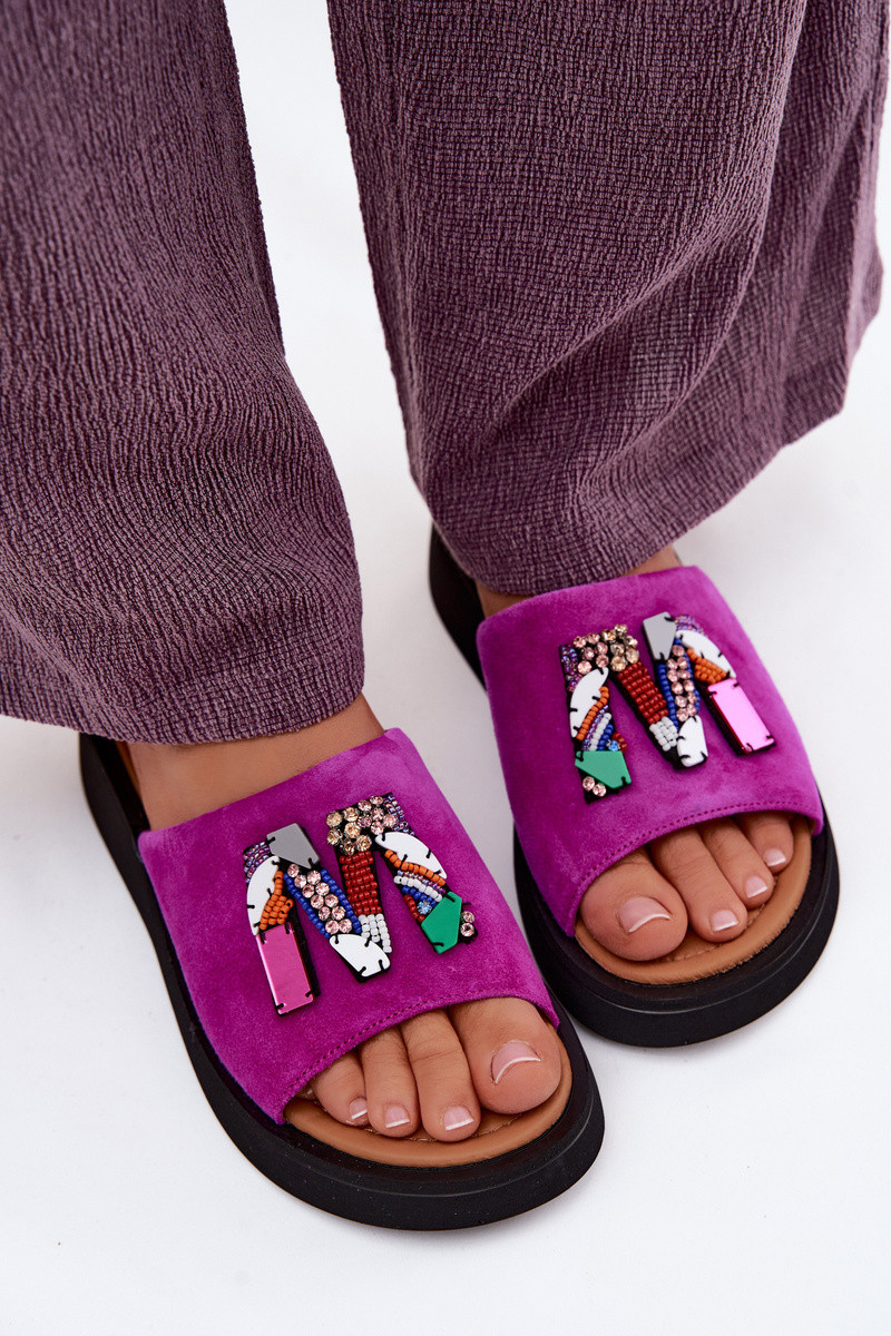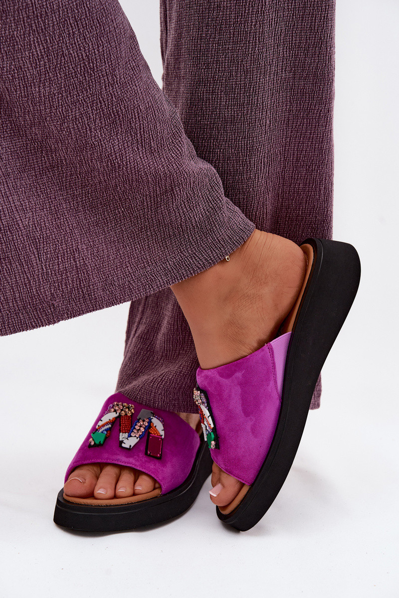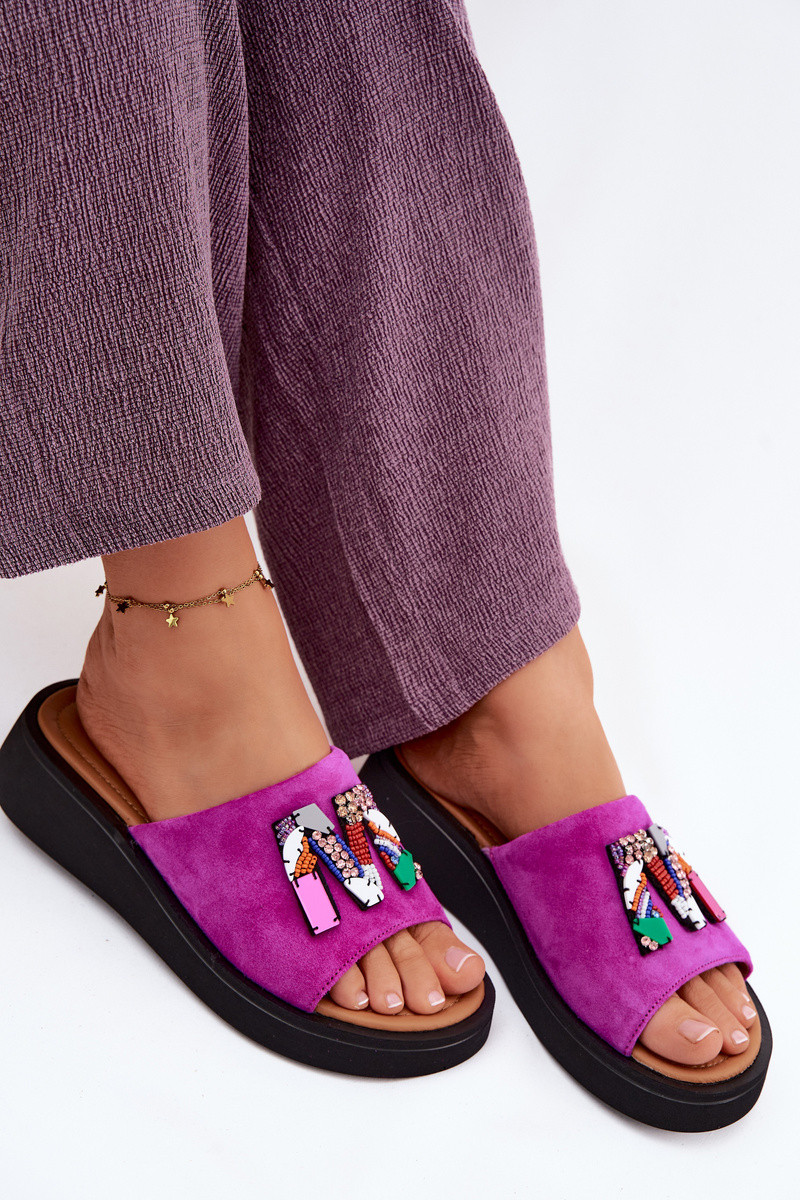 Kožené Dámske semišové papuče s ozdobami s platformou Vinceza 66942 Ružová