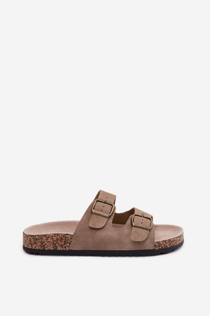 Khaki dámske šľapky so sponami na korkovej podrážke Harleen