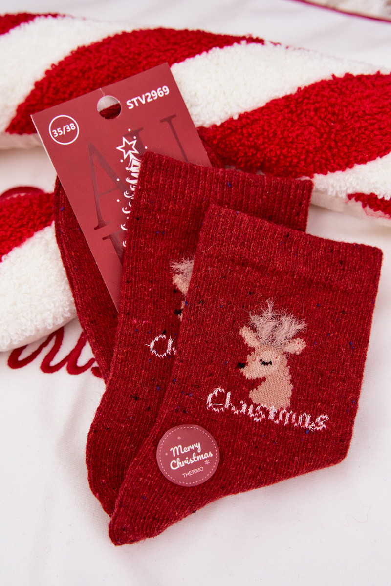 Dámske vianočné ponožky s jeleňmi, vlnené, červené