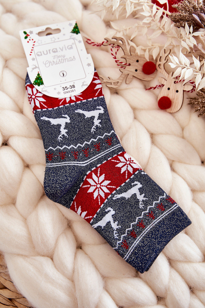 Dámske vianočné ponožky Lesk Soby tmavomodrá