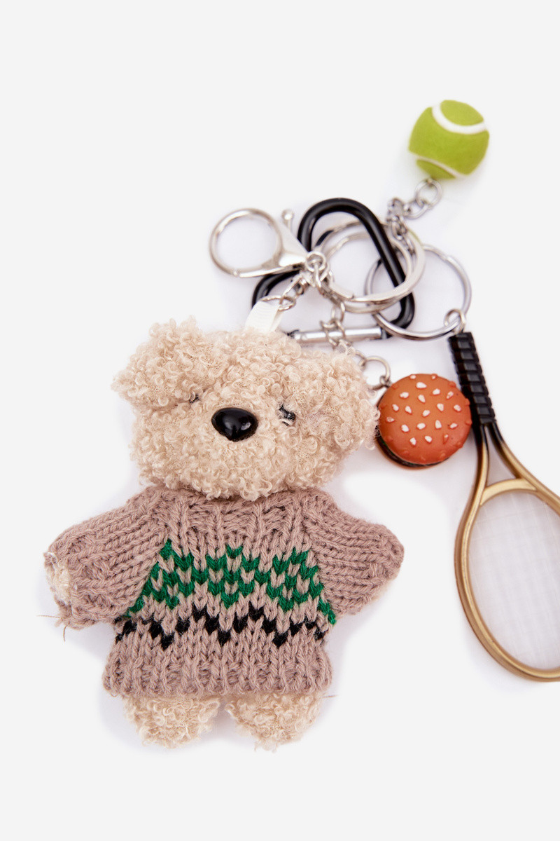 Kľúčenka medvedíky v svetri s raketou a loptou hamburger zlatá