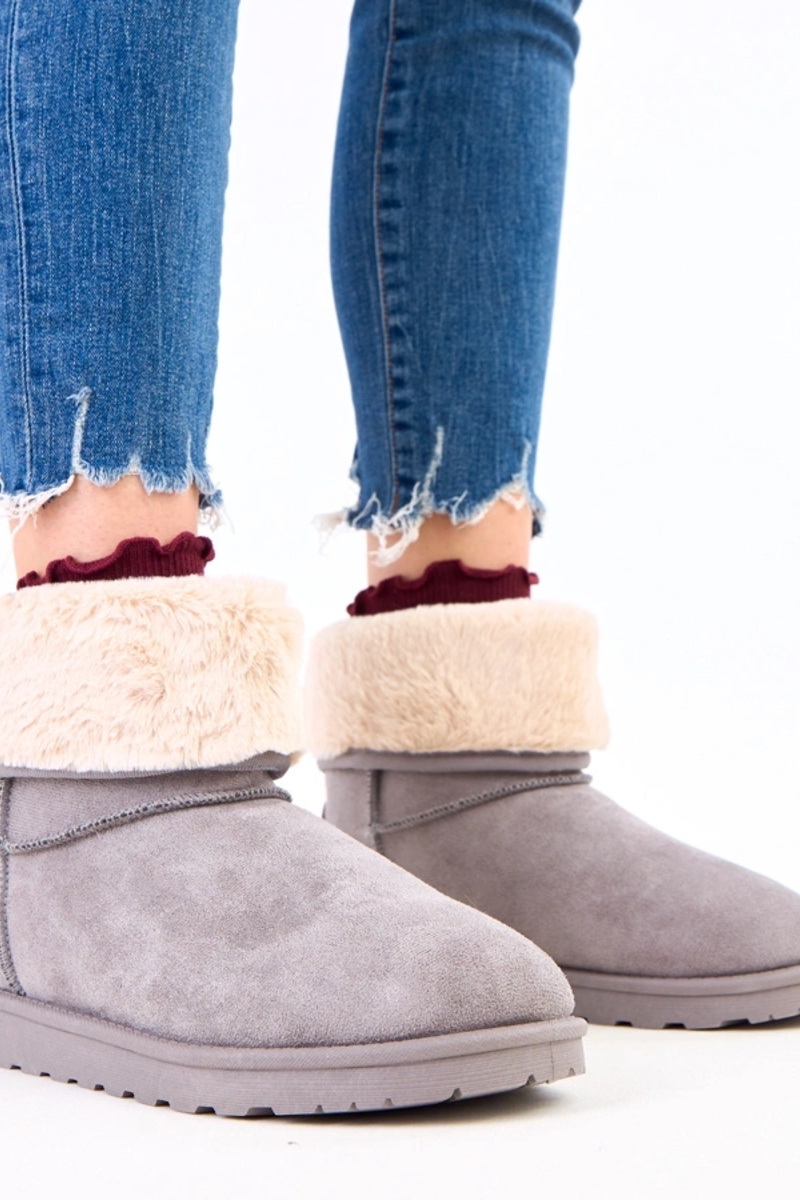 Sivé snehové topánky s kožušinou na platforme Meggi