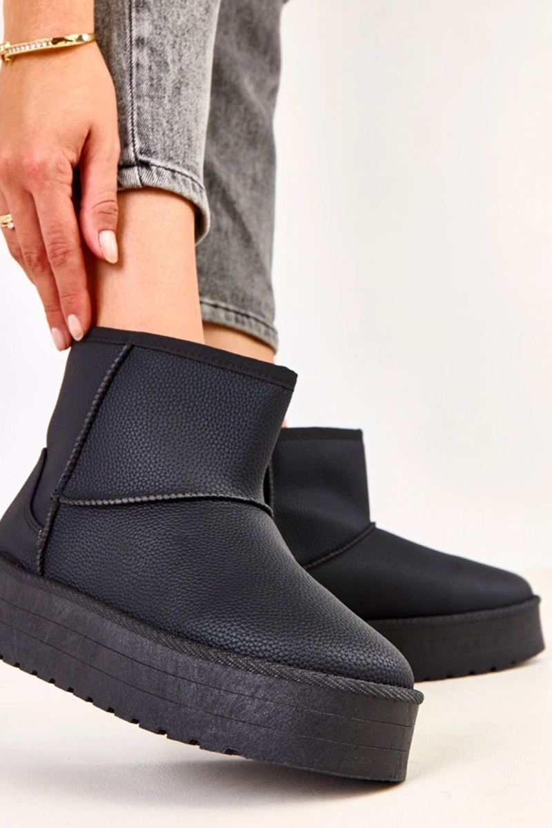 Čierne nízke snehové topánky s platformou z umelej kože, Reinol