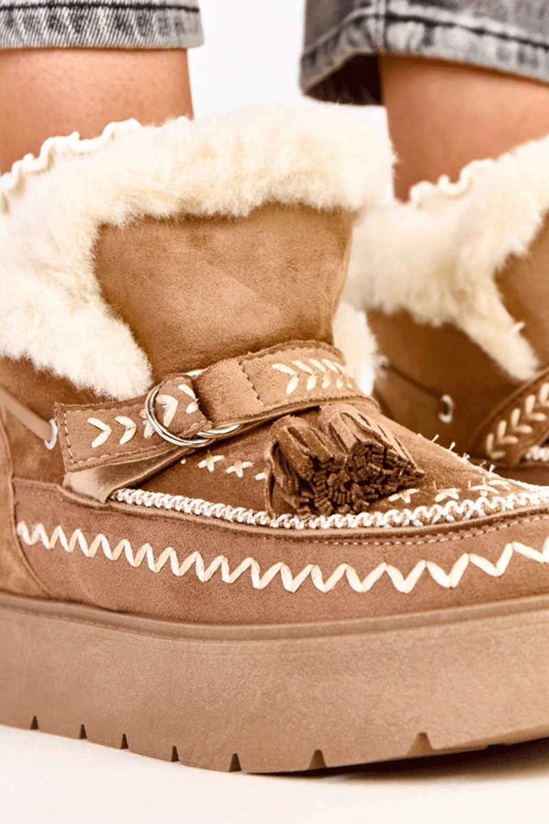 Svetlohnedé snehové topánky s platformou a strapcami, Maurisa