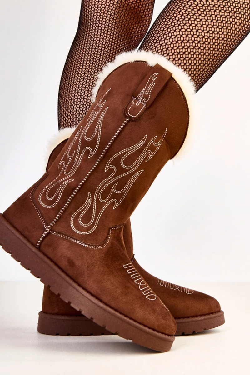 Trvalý model čižmy v kovbojskom štýle DámskeZapnutéturalnego zo semišuu Hnedá farba...