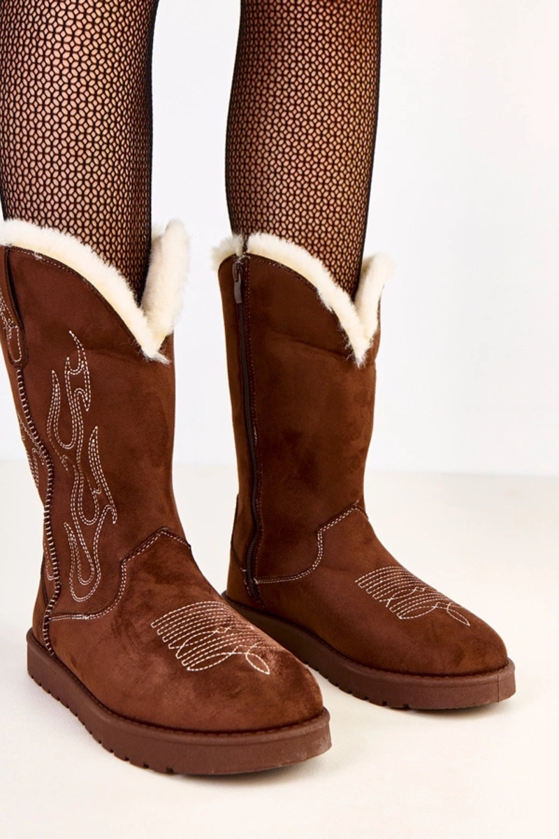 Hnedé snehové topánky s výšivkou na zvršku Darena