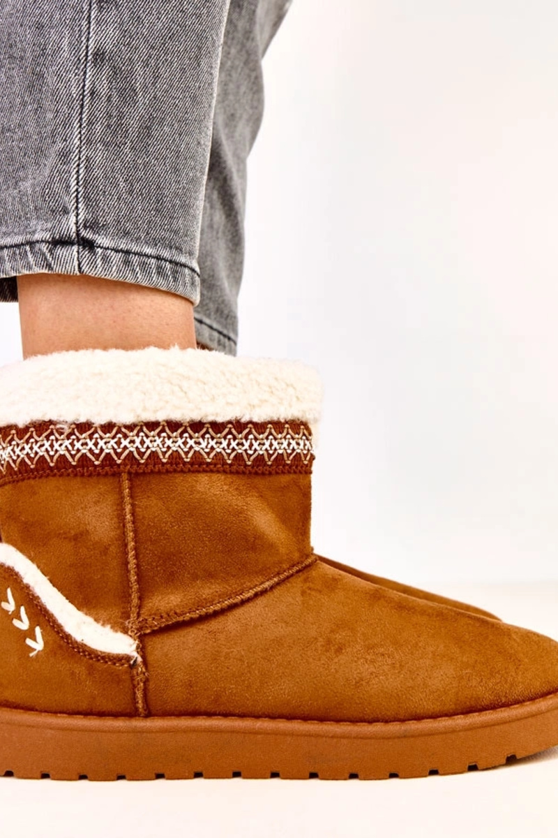 Karamelové nízke snehové topánky s výšivkou Sensila