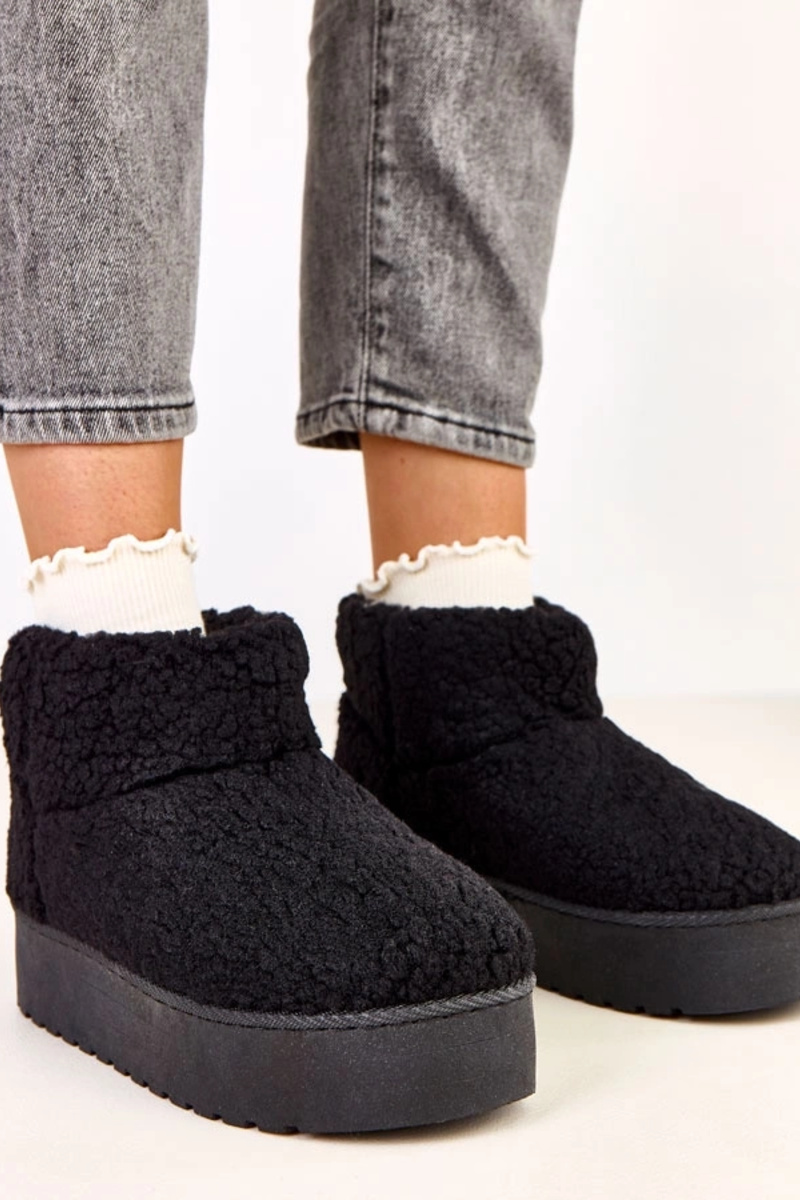 Čierne snehové topánky s ovčím kožuchom Lasso