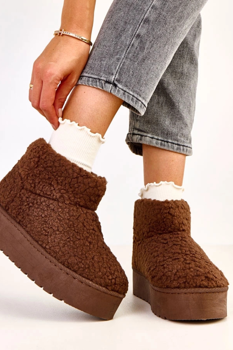 Tmavo hnedé snehové topánky s ovčím kožuchom Lasso