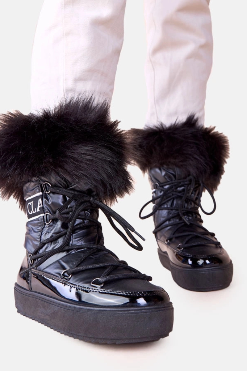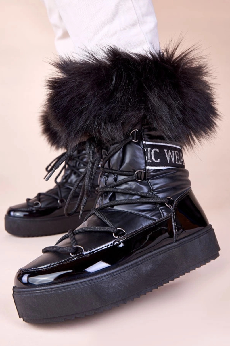Čierne snehové topánky so šnúrkami a kožušinou Alison