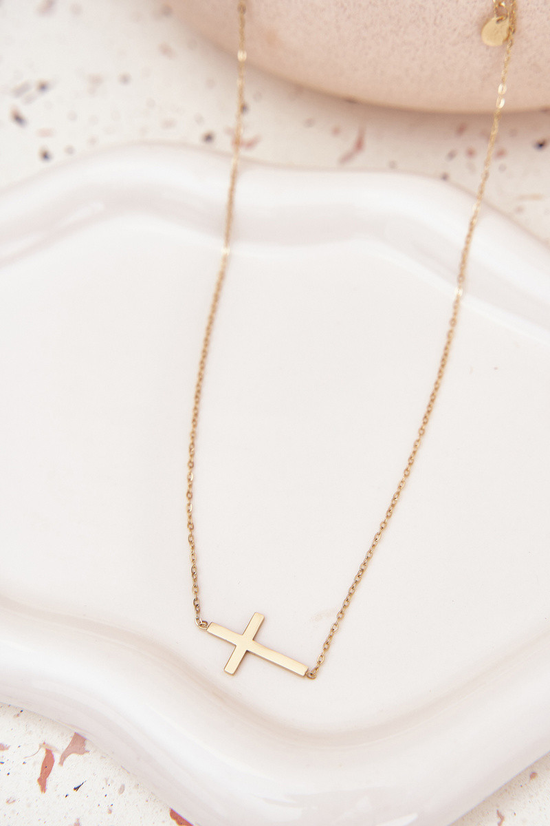 Retiazka s krížom z chirurgickej ocele zlatého odtieňa