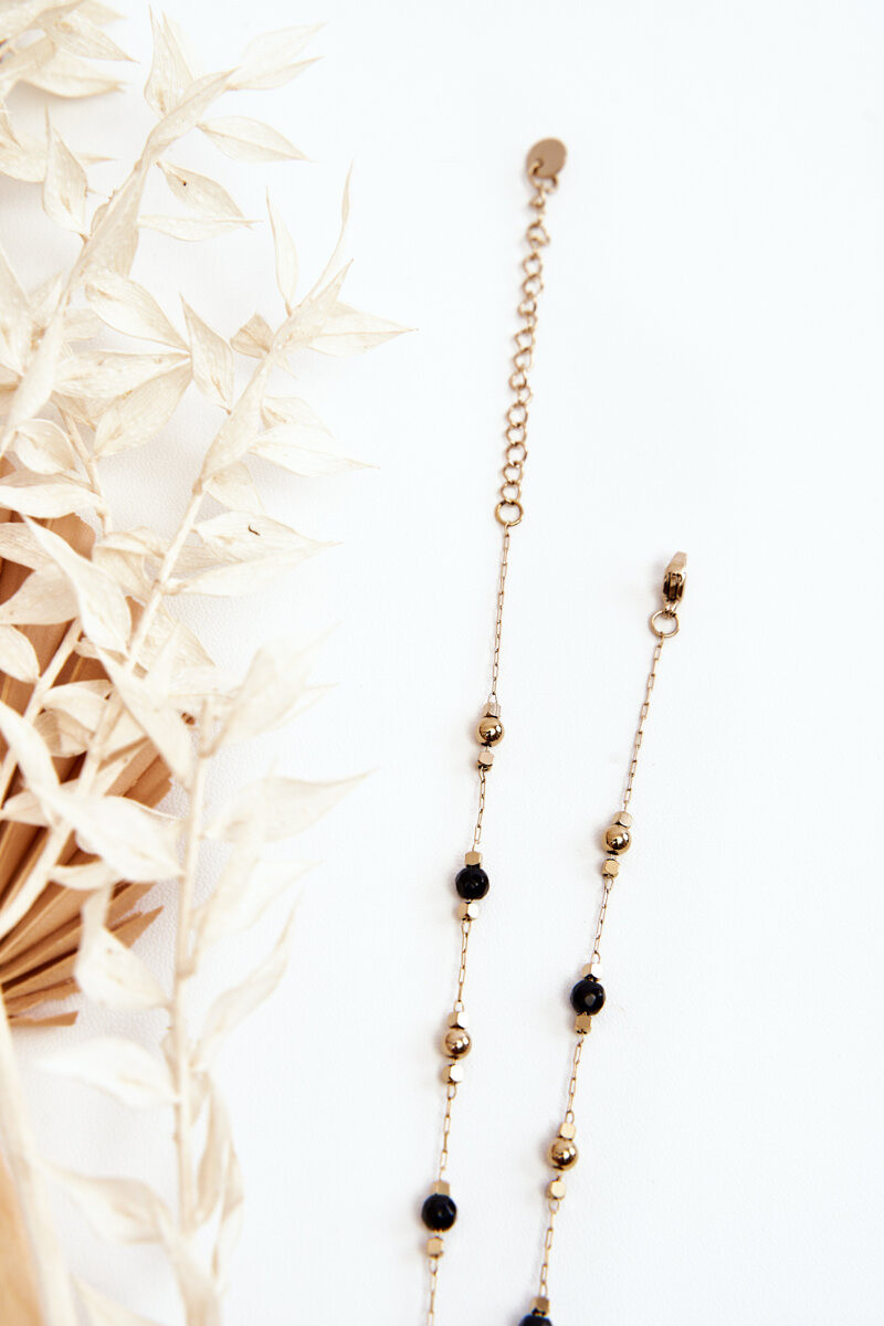 Dámsky náhrdelník S čiernymi korálkami zlatej farby