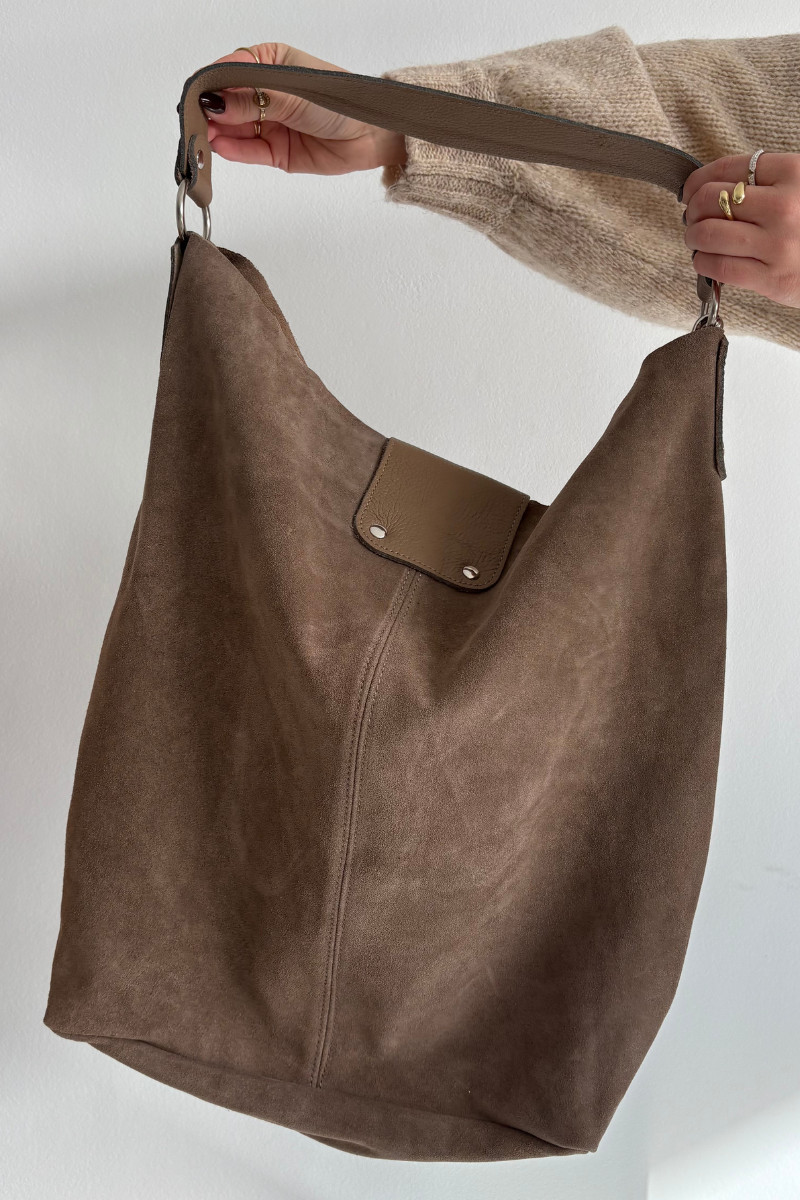 Veľká tmavo piesková umelá semišová kabelka Hanelle