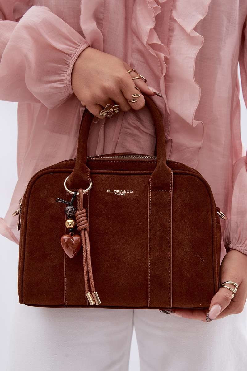Kabelka Typu Kufor z eko semišuoInaBrelokiem Hnedá farba Sorielle