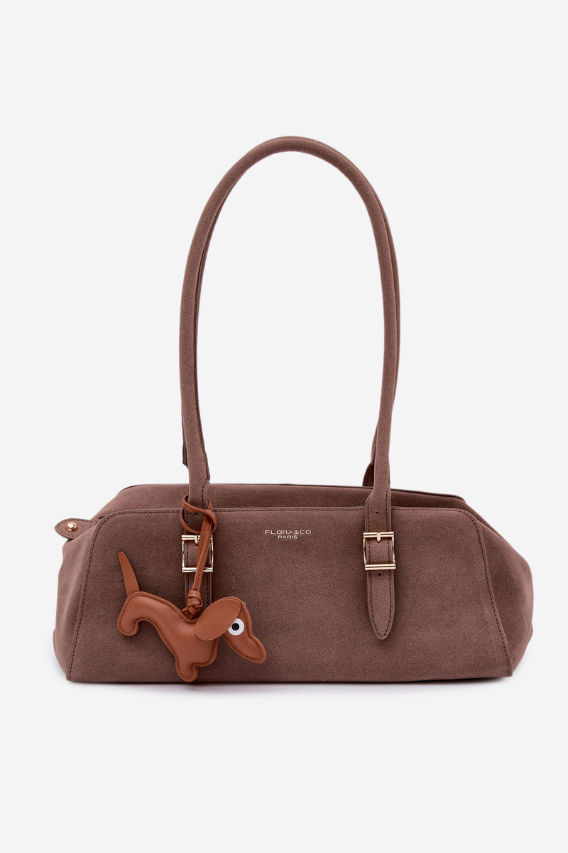 Kabelka z umelého semišu s príveskom tmavej pieskovej farby Noely