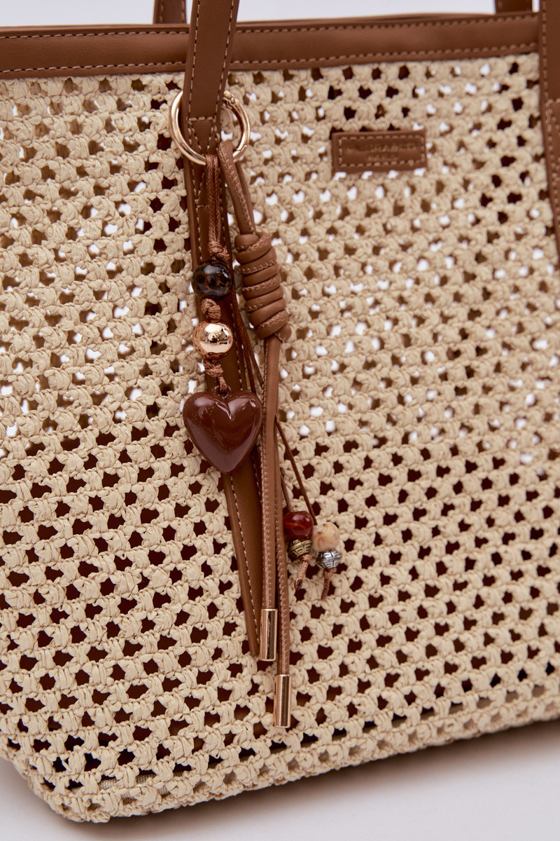 Pletená taška pre nakupujúcich s príveskom jasne hnedá Noella