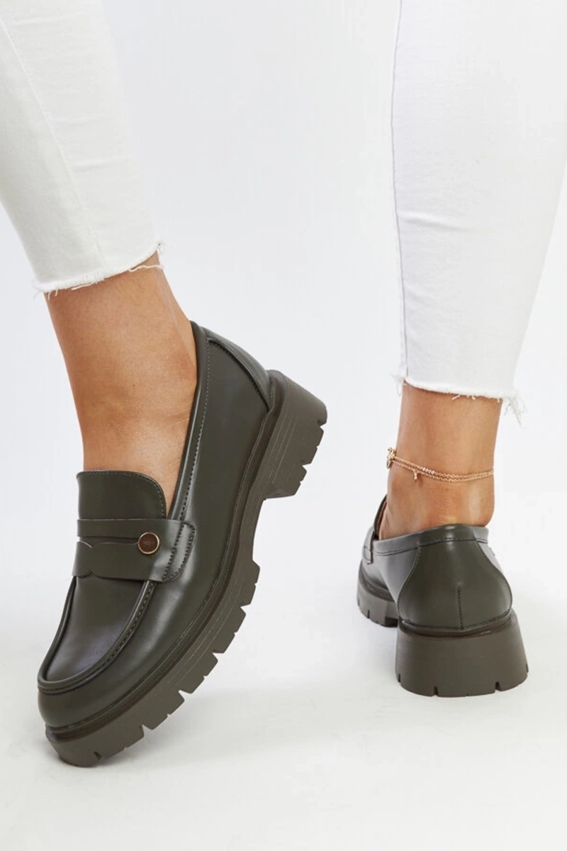 Tmavozelené topánky z umelej kože Mladenka