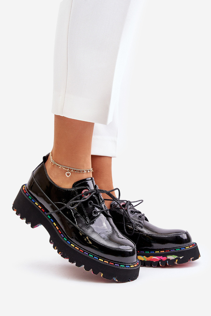 Dámske čierne lakované topánky s šnúrkami Artiker 55C0497