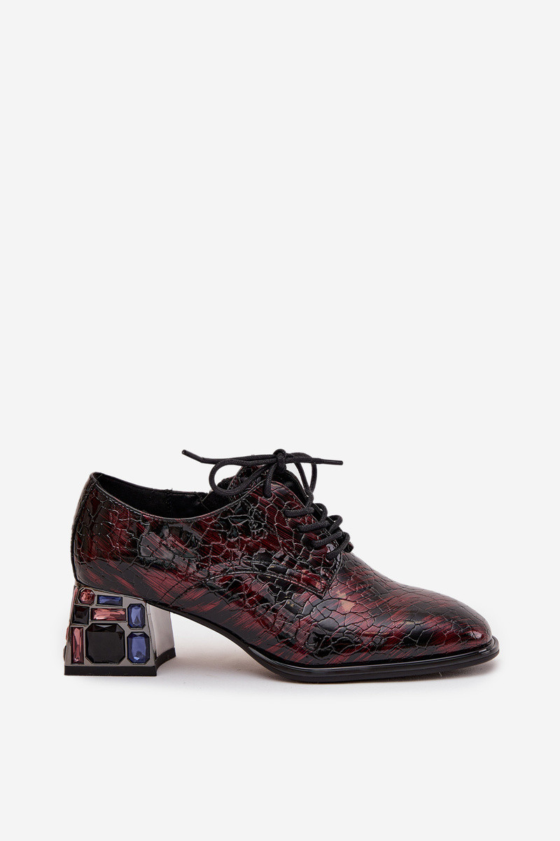 Lakované dámske poltopánky z prírodnej kože s podpätkami a trblietavými kamienkami Artiker 57C0073 bordovej farby