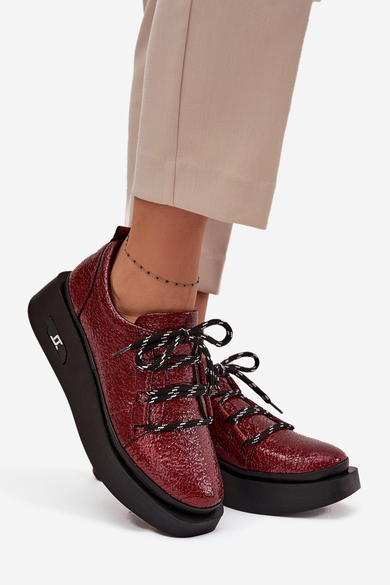 Lakovane prírodné kožené dámske poltopánky s platformou Artiker 57C2046, bordové