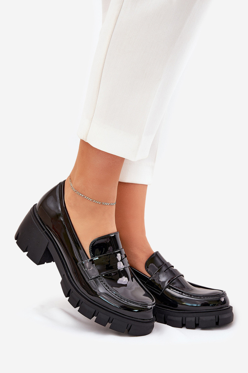 s lakovým efektom topánky Dámske Zapnuté masívnych opätkoch čierna Felonith
