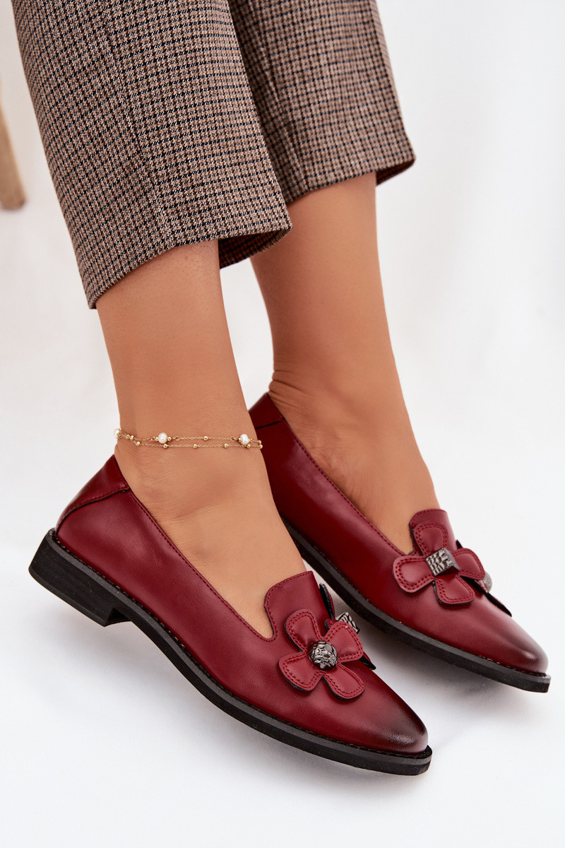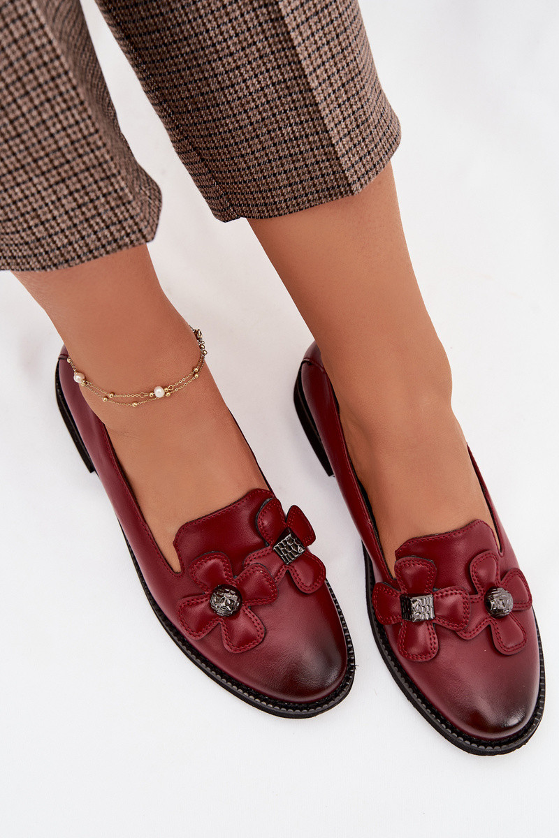 Dámske topánky s širokými podpätkami a kvetinovými motívmi bordovej farby Tavillette