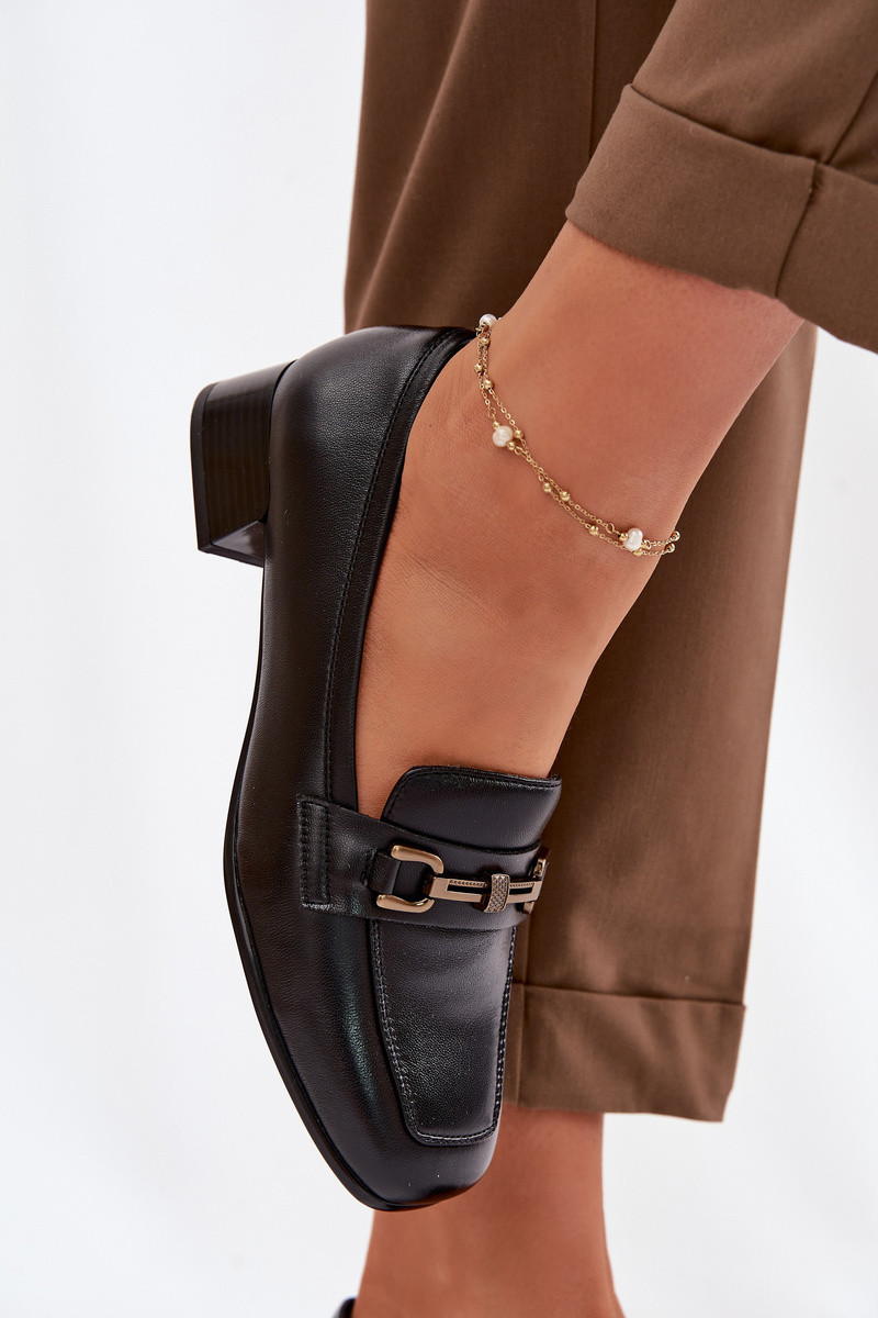 Dámske papuče so zlatými sponami, čierne