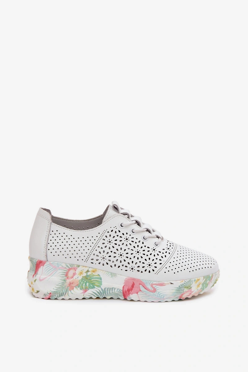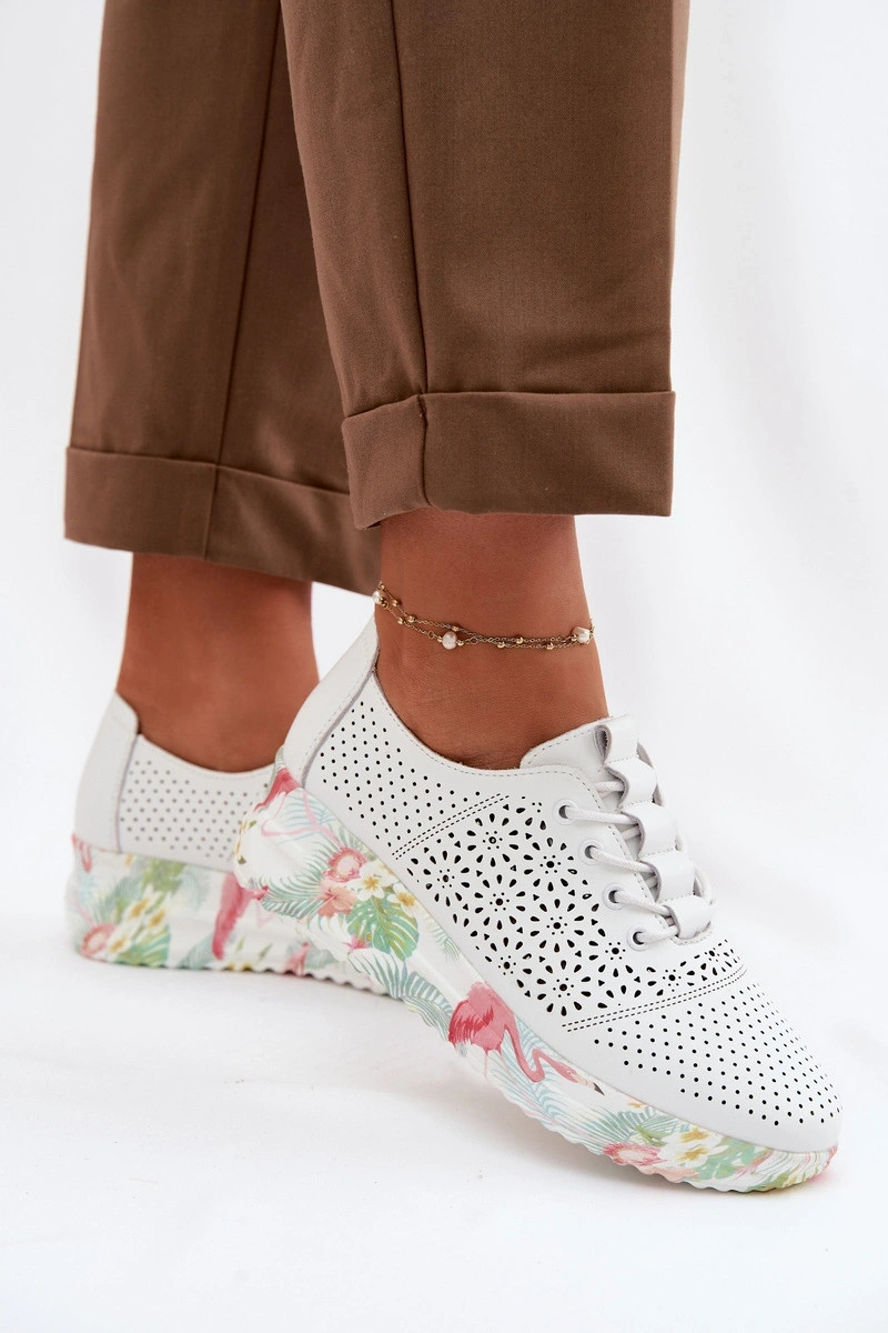 Dámske kožené topánky s perforovanými prvkami Telina biele