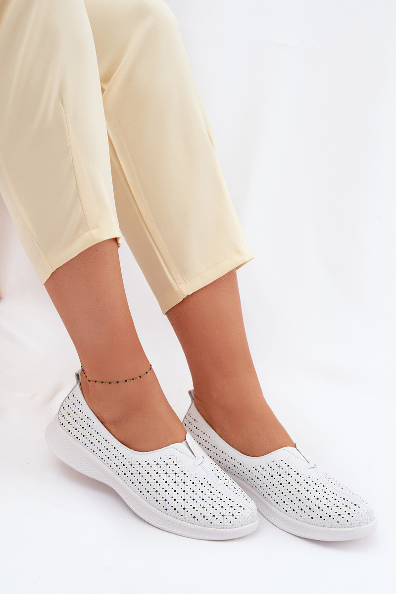 Múdre dámske perforované kožené topánky Eliva biela farba