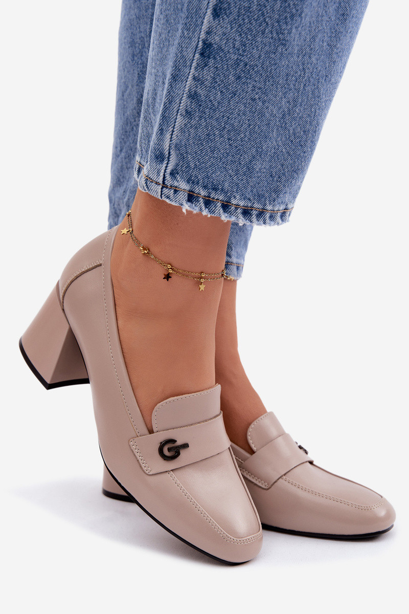 Kožené topánky Dámske s podpätkami Vinceza 18119 béžová