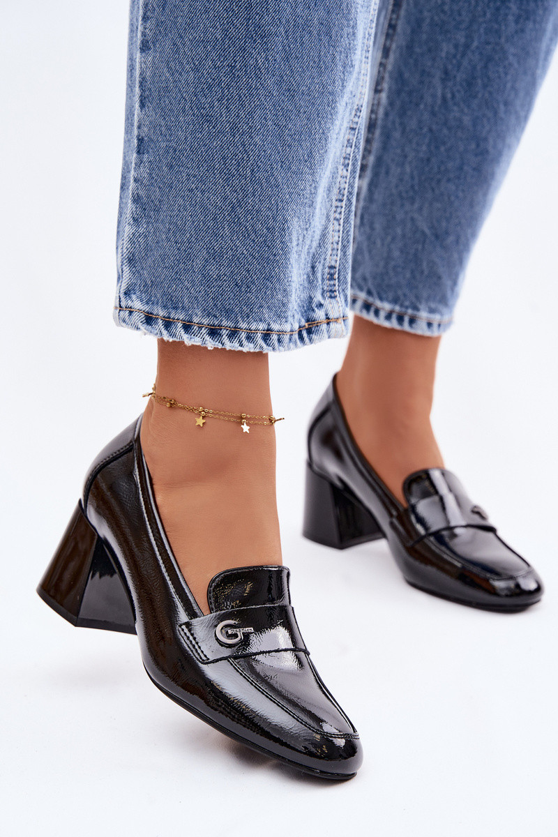 Lakované polokožené topánky Dámske s podpätkami Vinceza 18119 čierna