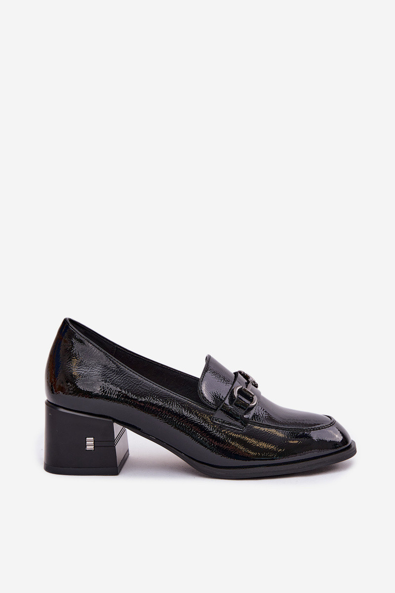 Lakované kožené poltopánky pre ženy na podpätku Vinceza 18116 čiernej farby