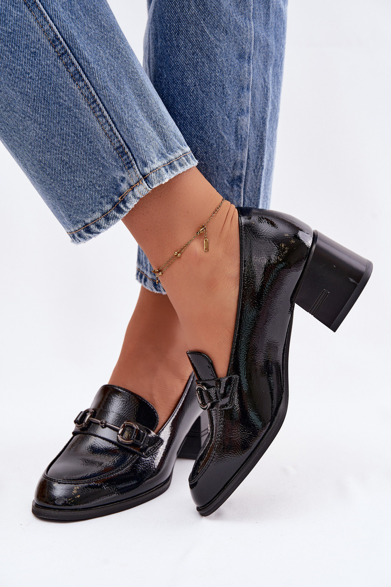 Lakované polokožené topánky Dámske s podpätkami Vinceza 18116 čierna