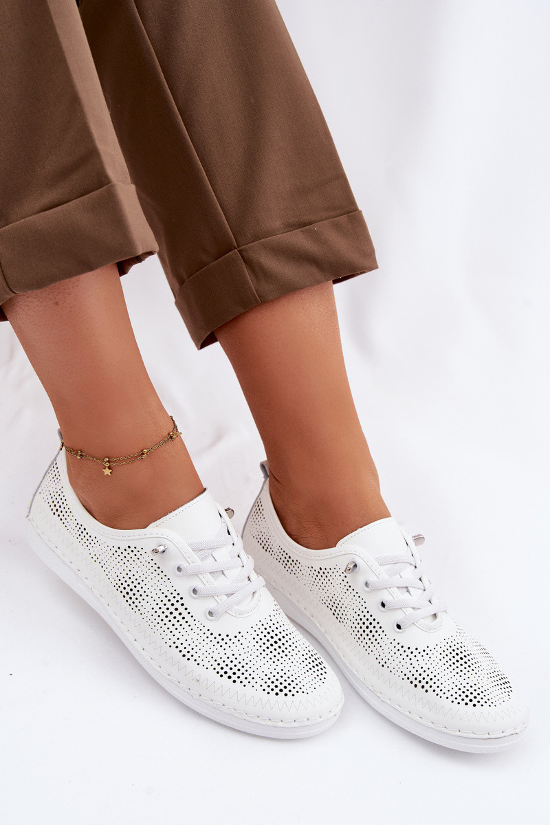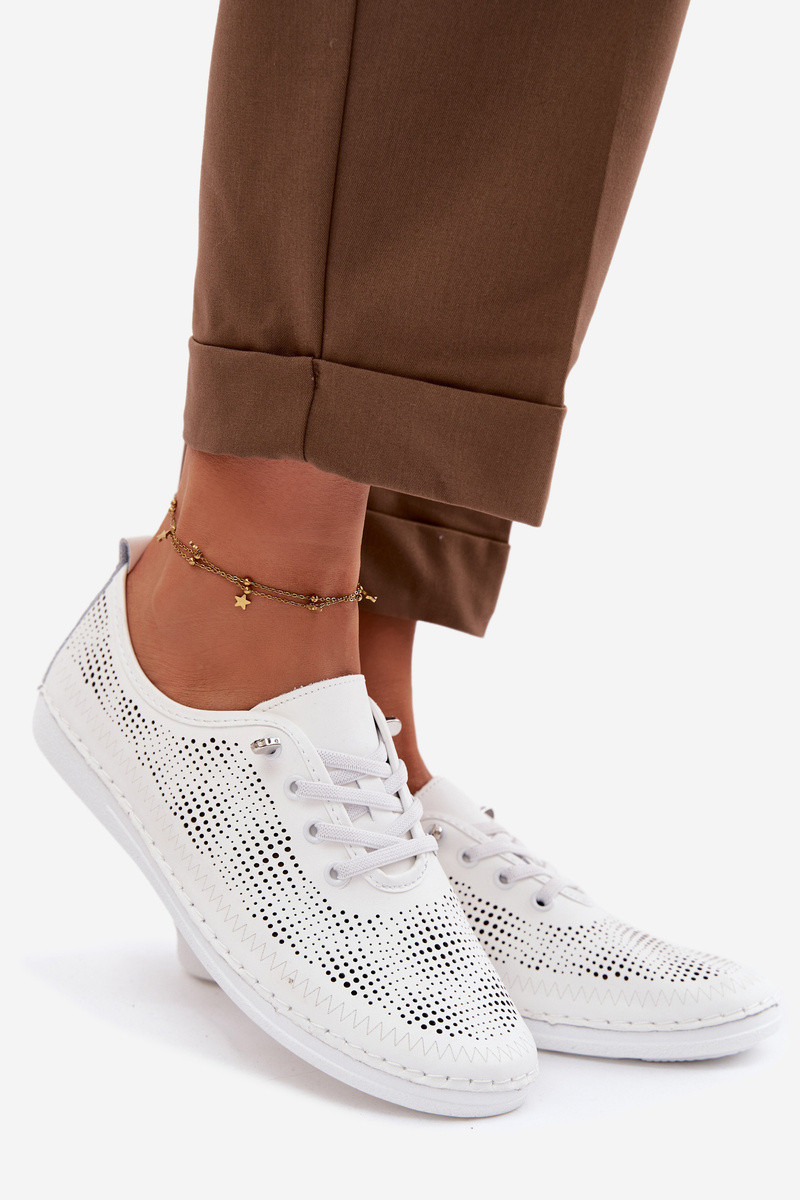 Kožené s prvkami prelamovania topánky Dámske S.Barski LR61-7083 biela farba