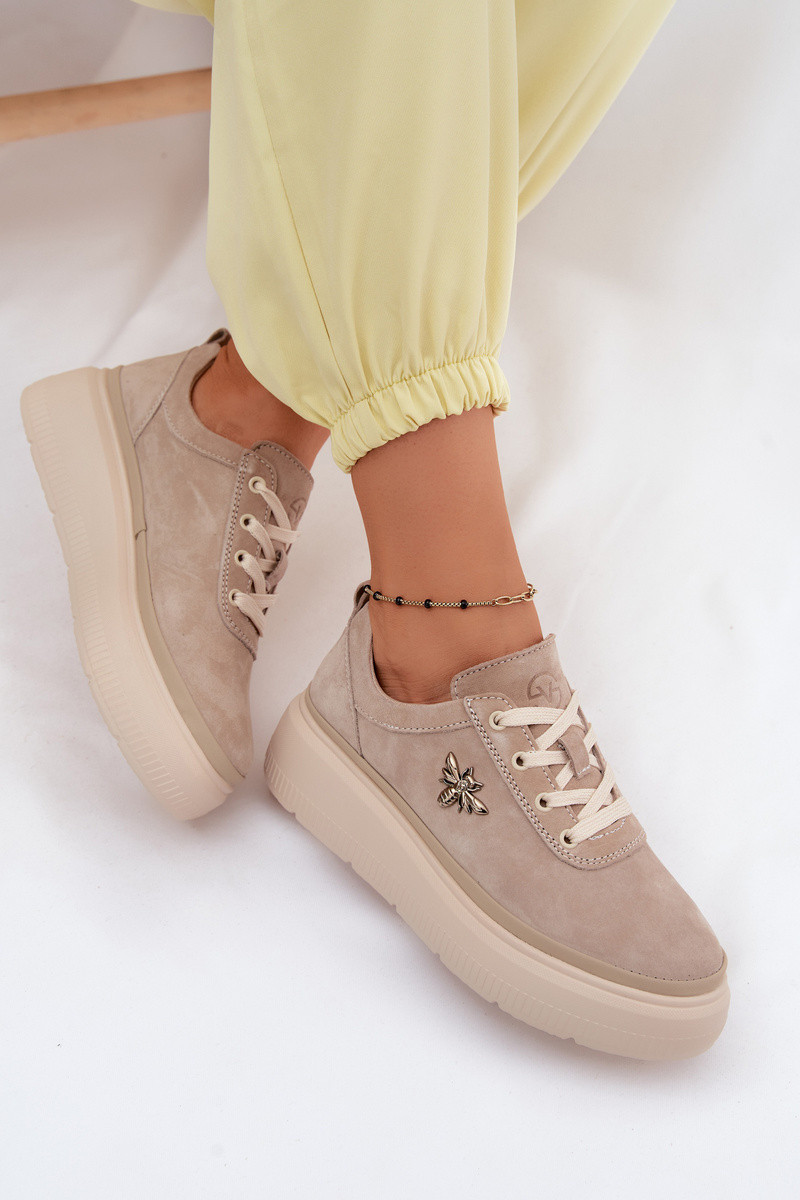 Umelé semišové topánky s platformou Vinceza 41523 pieskovej farby