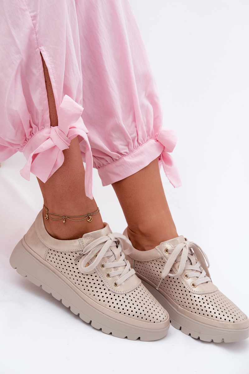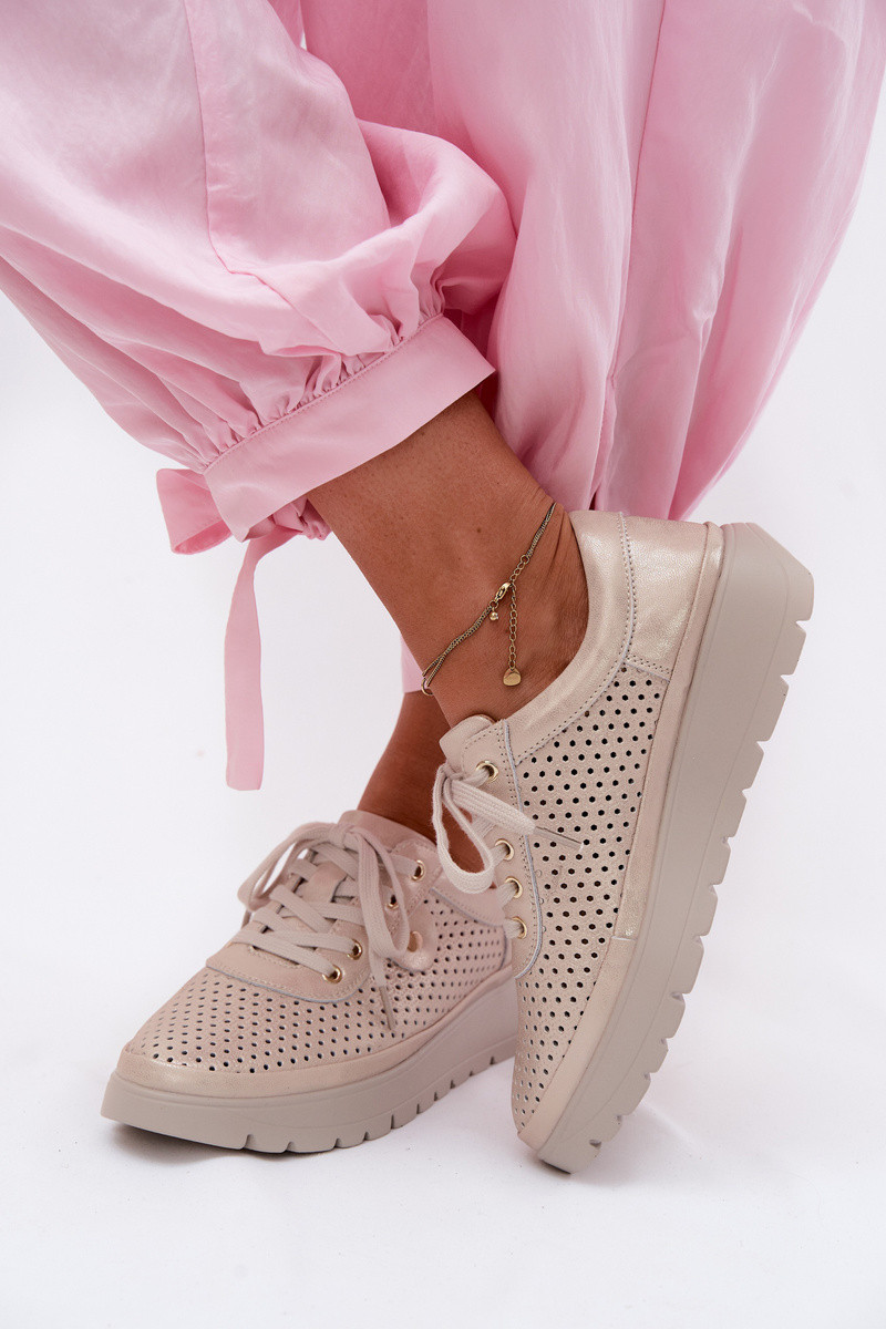 Kožené s prvkami prelamovania topánky Dámske Vinceza 79629 zlatej farby