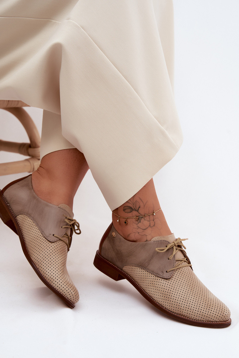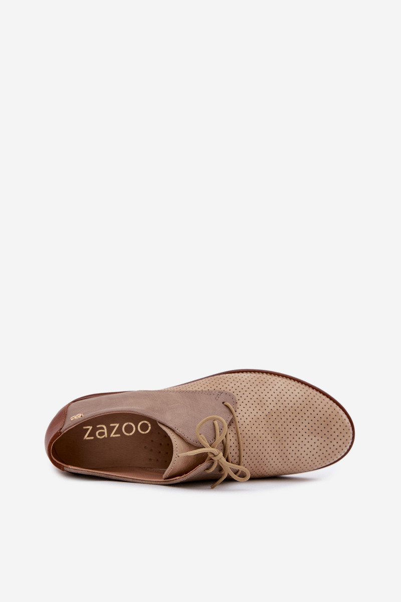 Kožené topánky Dámske Elegantný štýl so šnúrkami Zazoo 4238 béžová-Hnedá farba