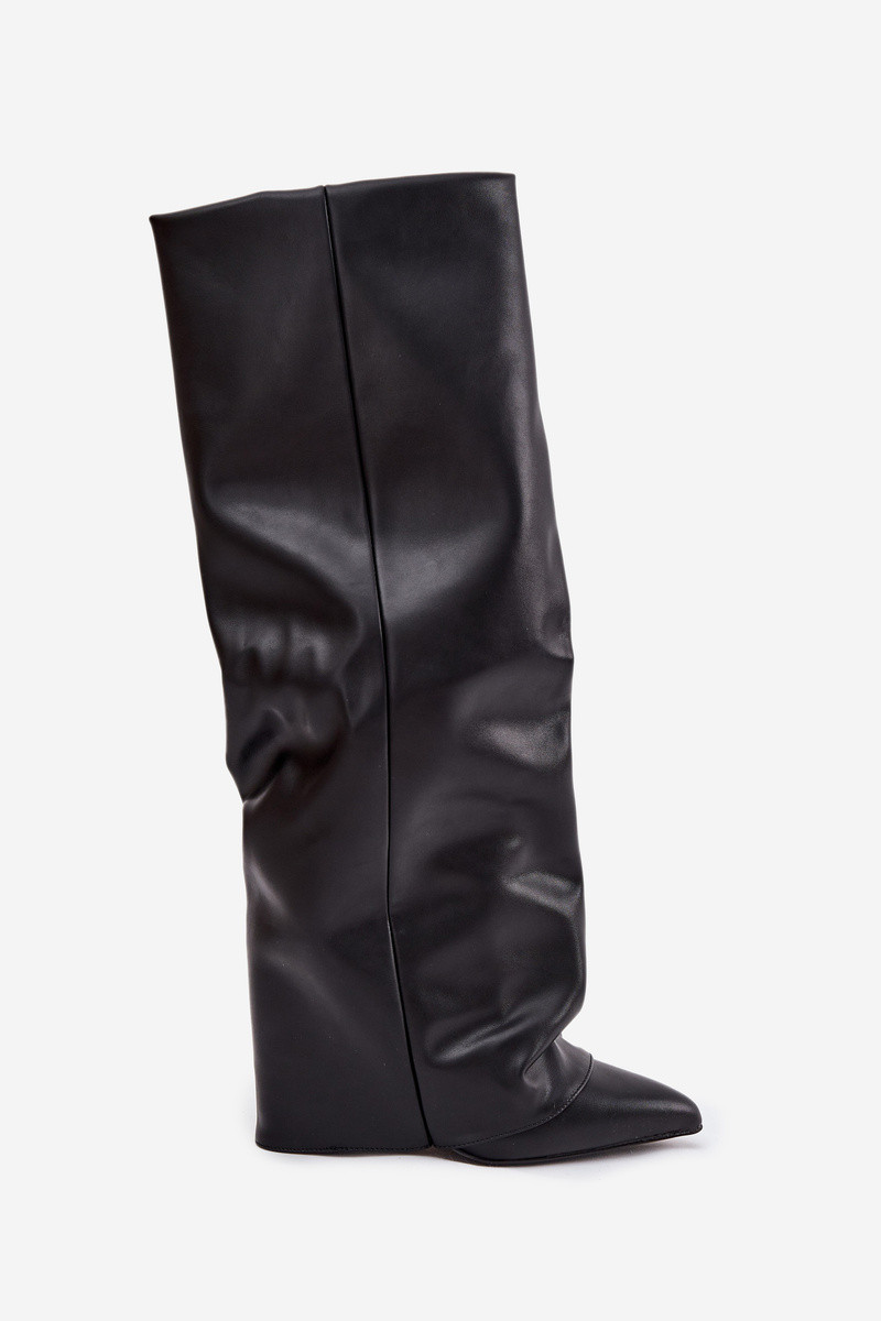Zateplené dámske vysoké čižmy s prišitým golierom a podpätkami, čierne, Elivira