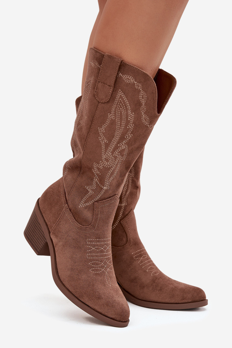 dámske vysoké cowboyské topánky s podpätkami zateplené Vinceza 16508 v pieskovej farbe