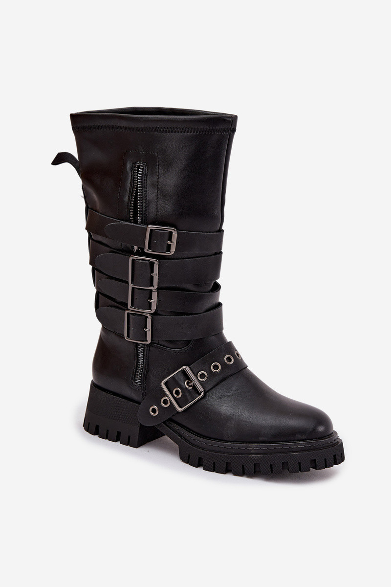 Čierne zateplené dámske dlhé čižmy s pásikmi a sponami „Ivaline"