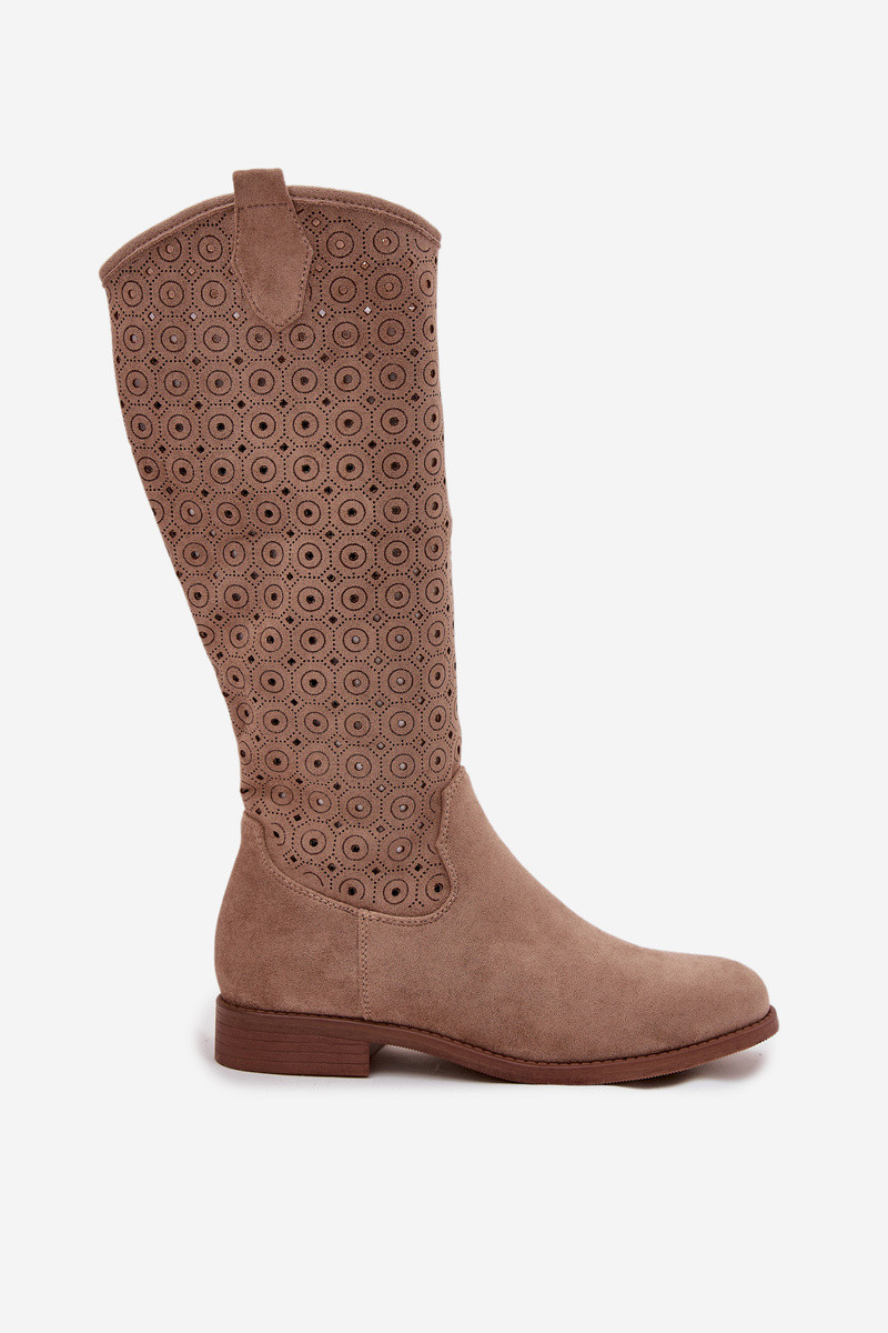 dámske čižmy so širokými podpätkami s prelamovanými prvkami S.Barski HY52-531 béžová