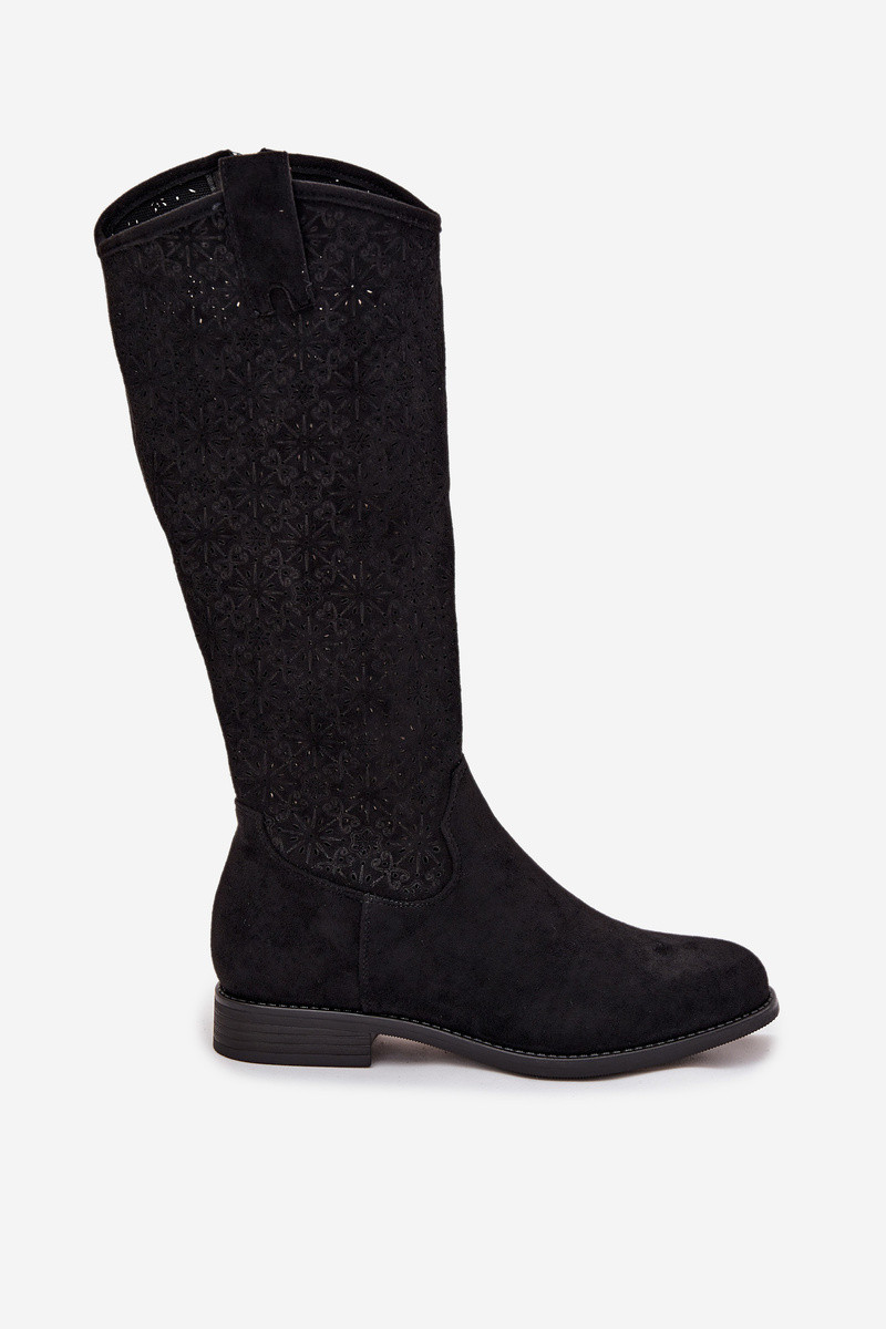 dámske čižmy s prvkami prelamovania so širokými podpätkami S.Barski HY52-534 čierna