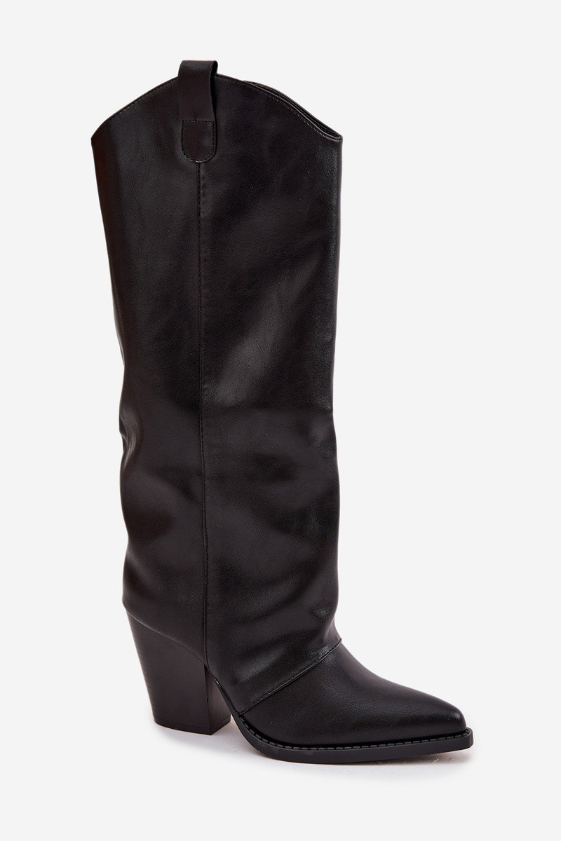 Zateplené vysoké topánky v cowboyskom štýle s podpätkami z umelej kože, čiernej farby Taiturivine