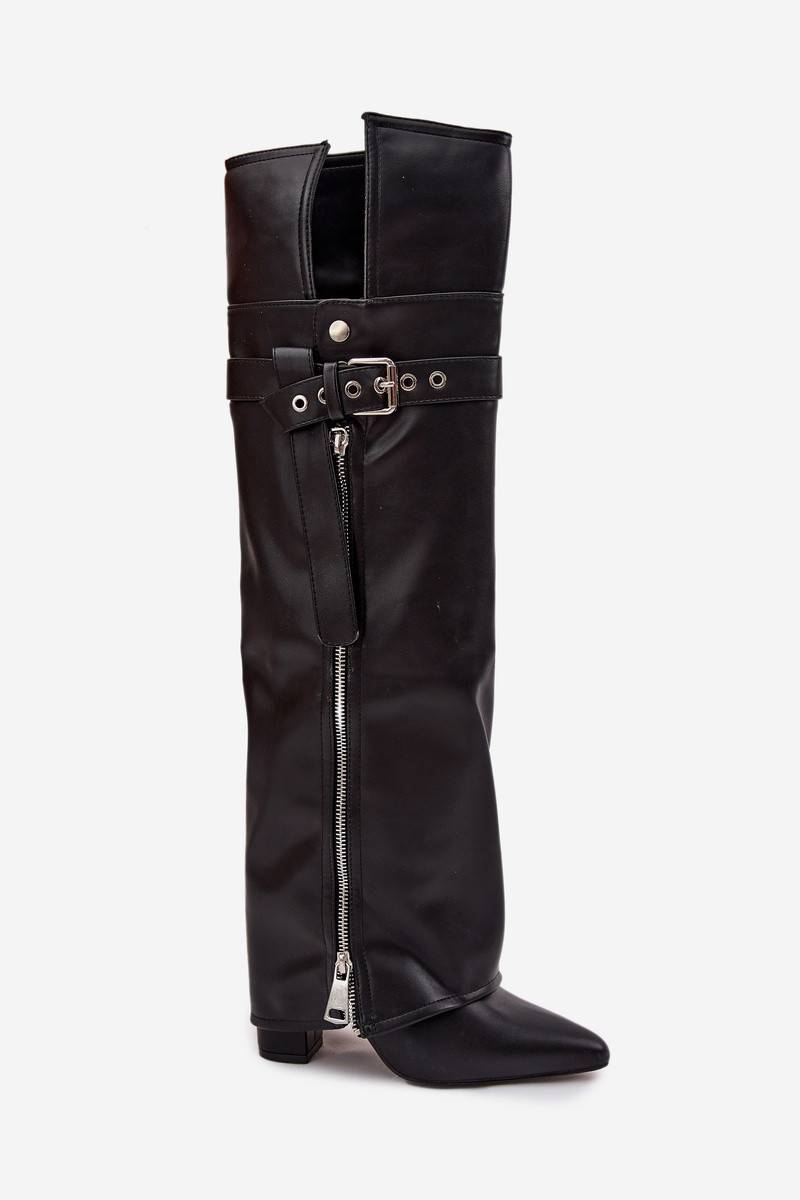 zahriať sa dámske čižmy nad kolenom s podpätkami s popruhmi s prackami I strieborná farbam Zamkiem čierna Reisa