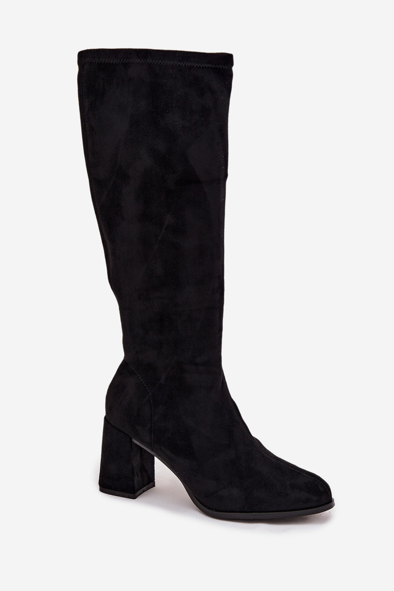 Dámske vysoké topánky s podpätkami z umelej semišovej kože, čiernej farby Yelisse