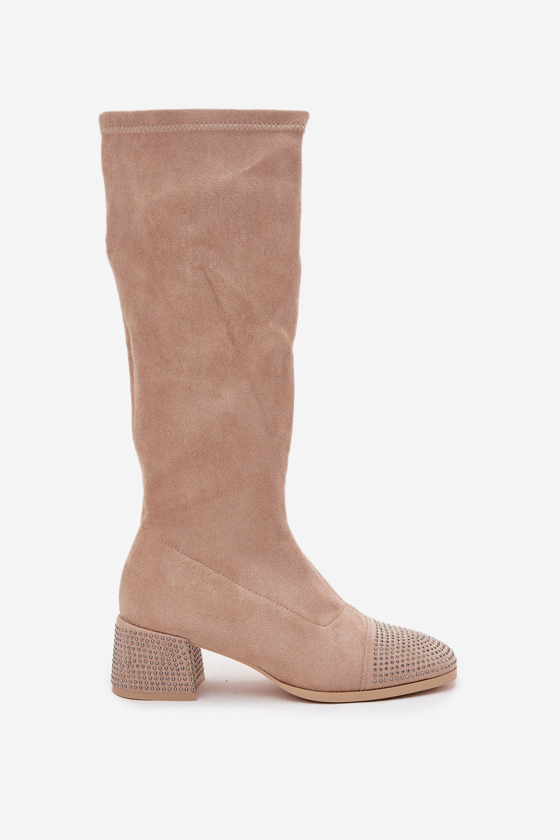 dámske čižmy S Dekoráciou Zapnuté Klocku z eko semišuoIne béžová Ivanna