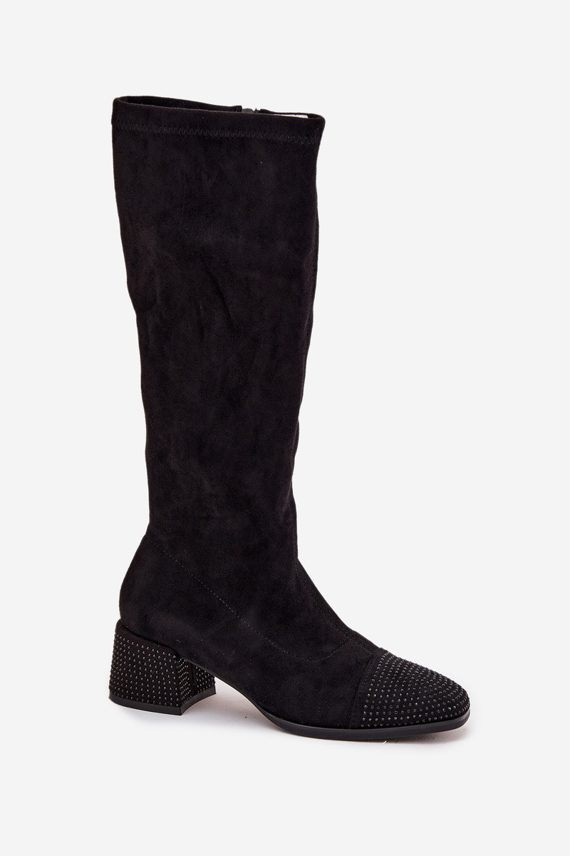 dámske čižmy S Dekoráciou Zapnuté Klocku z eko semišuoIne čierna Ivanna