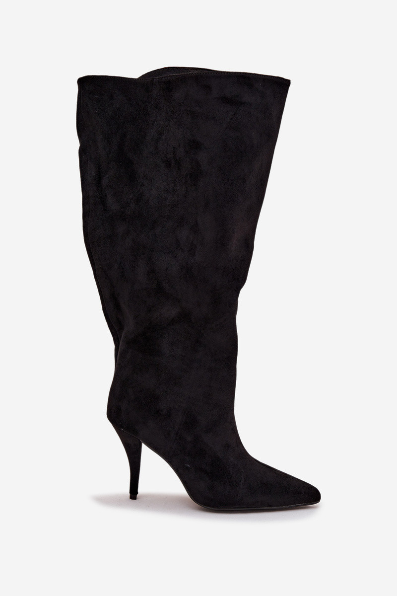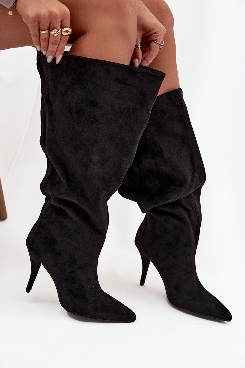 Trvalý model dámske čižmy s tenkými podpätkamiz eko semišuu čierna Noretta