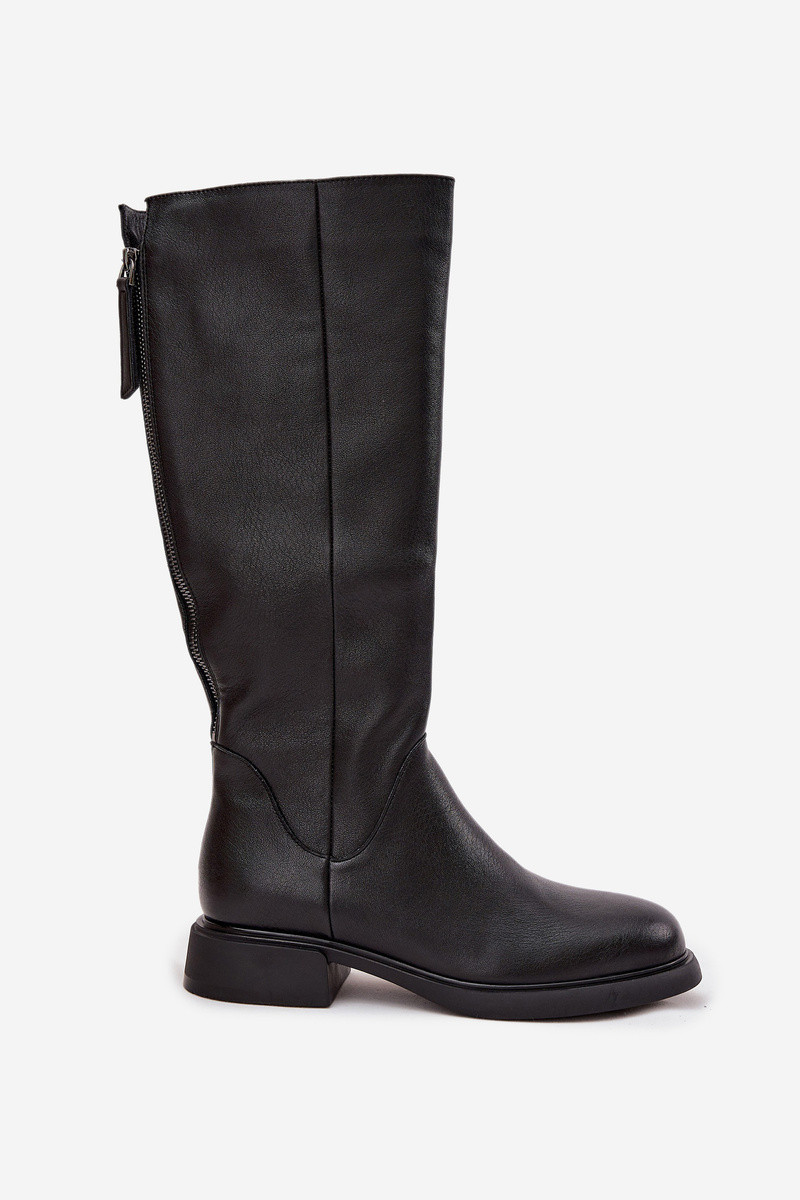 Kožené dámske čižmy so širokými podpätkami zahriať sa D&A JC52-837 čierna